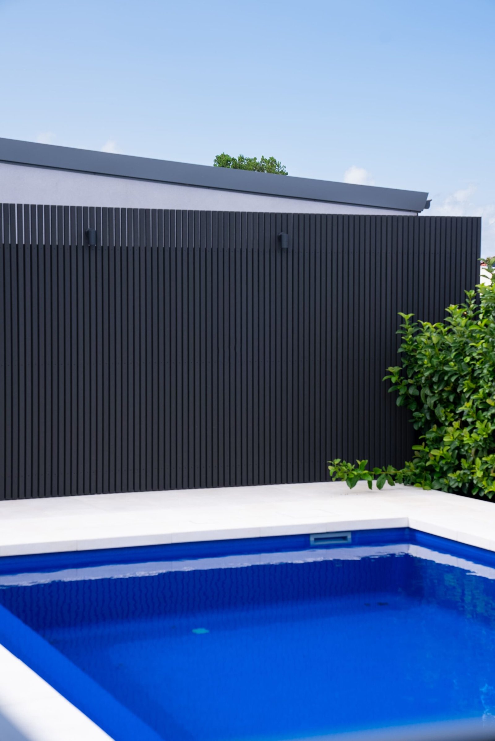 • Slatted timber/metal privacy screens and fencing.