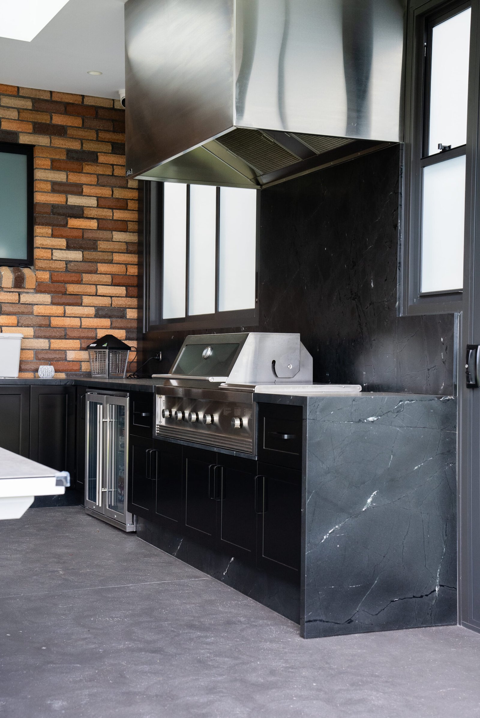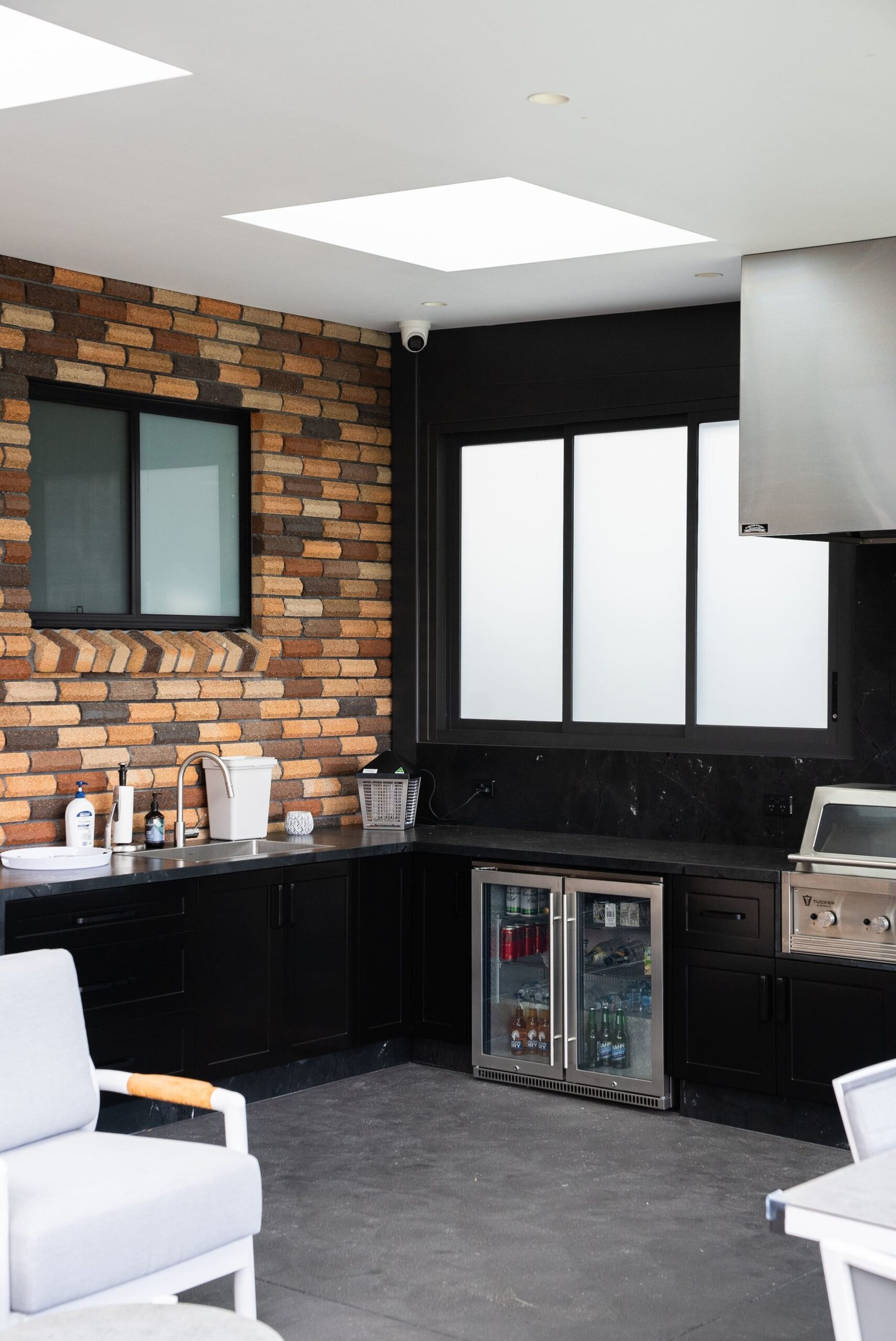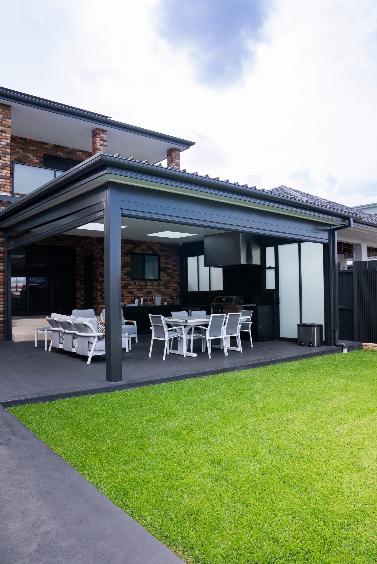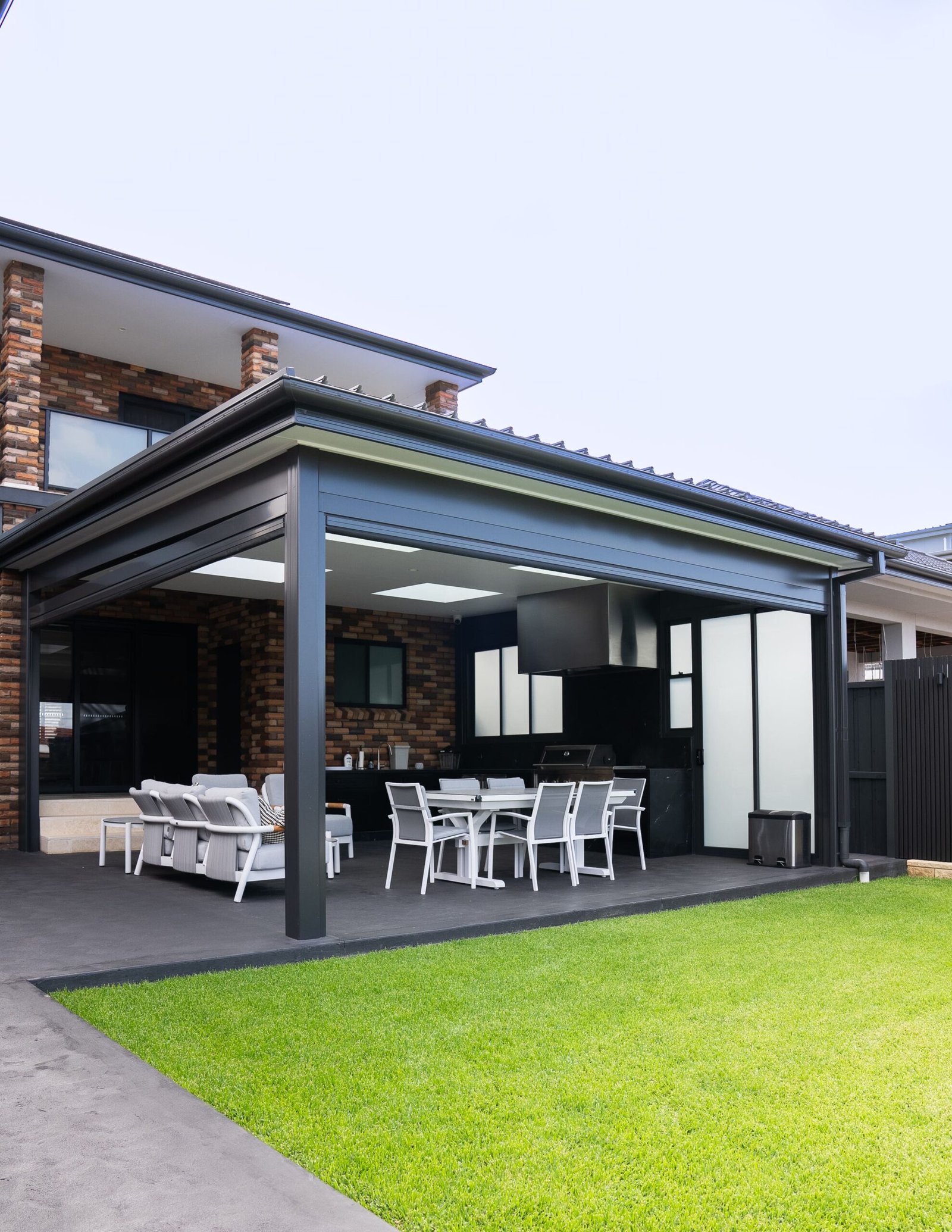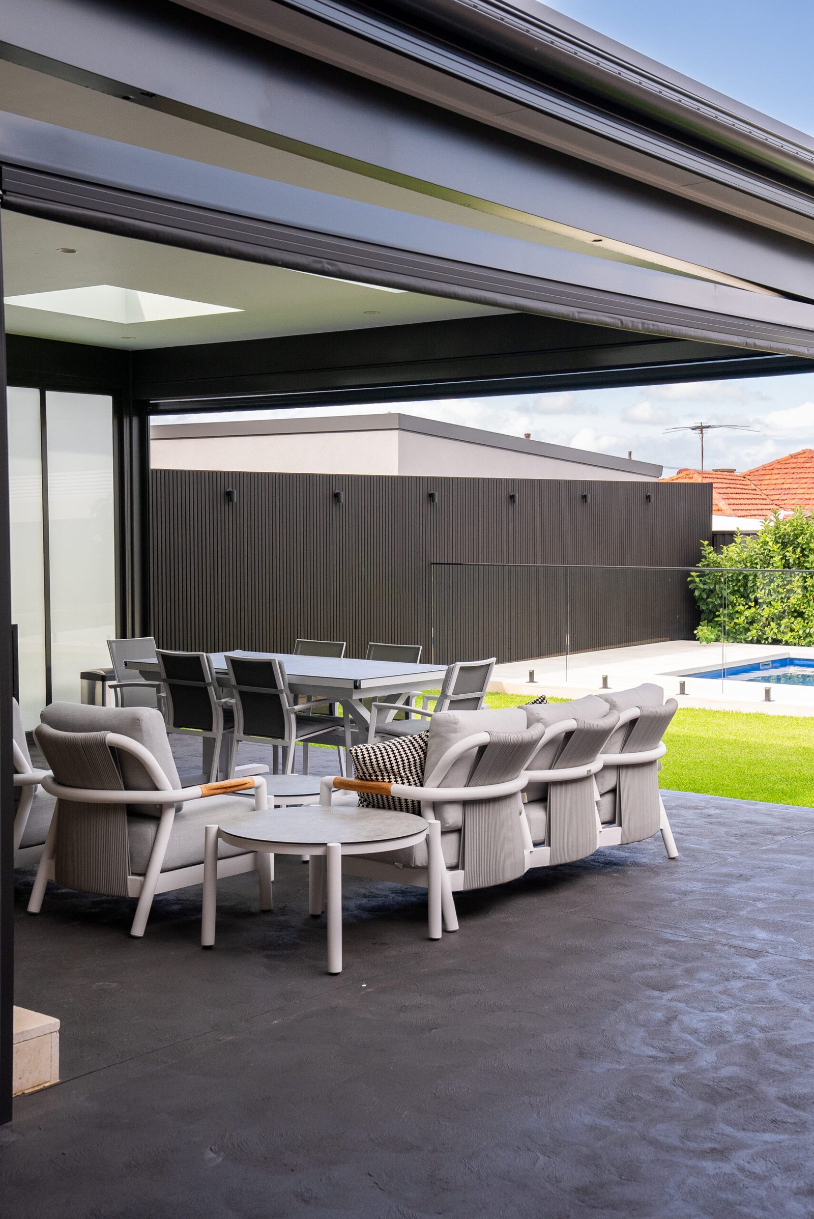 • Aluminium louvred roof structure for the alfresco pavilion.